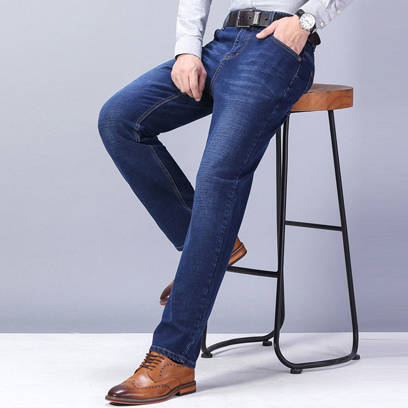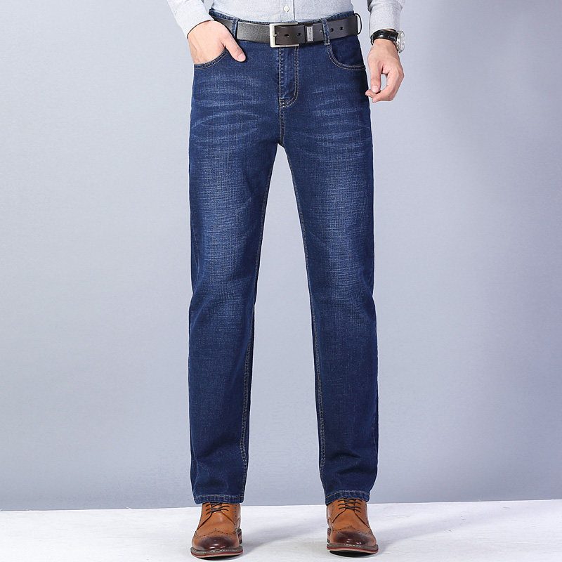 圣得西男加厚保暖牛仔裤2025年冬季新款中青年宽松直筒棉弹休闲裤
