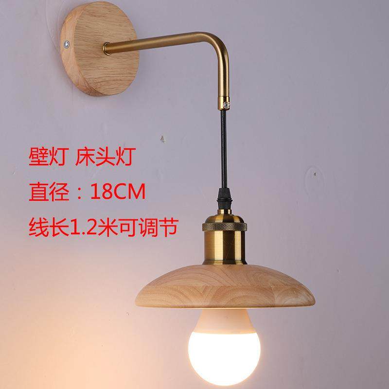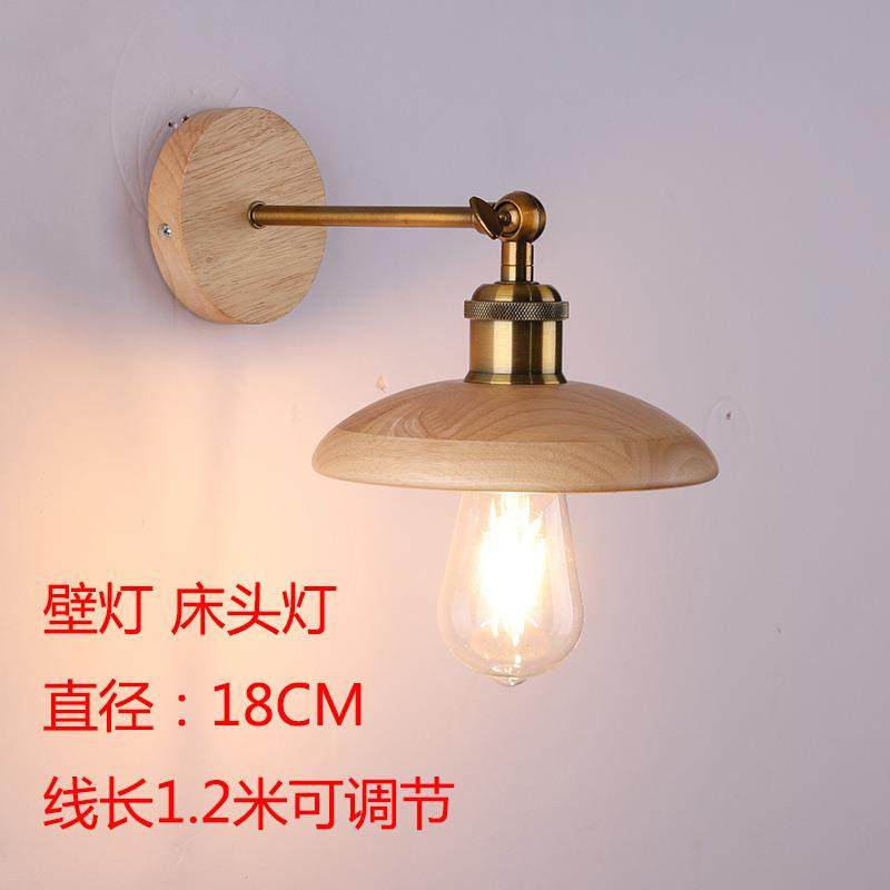 日式木艺床头壁灯卧室简约现代实木中式北欧创意客厅过道酒店灯具