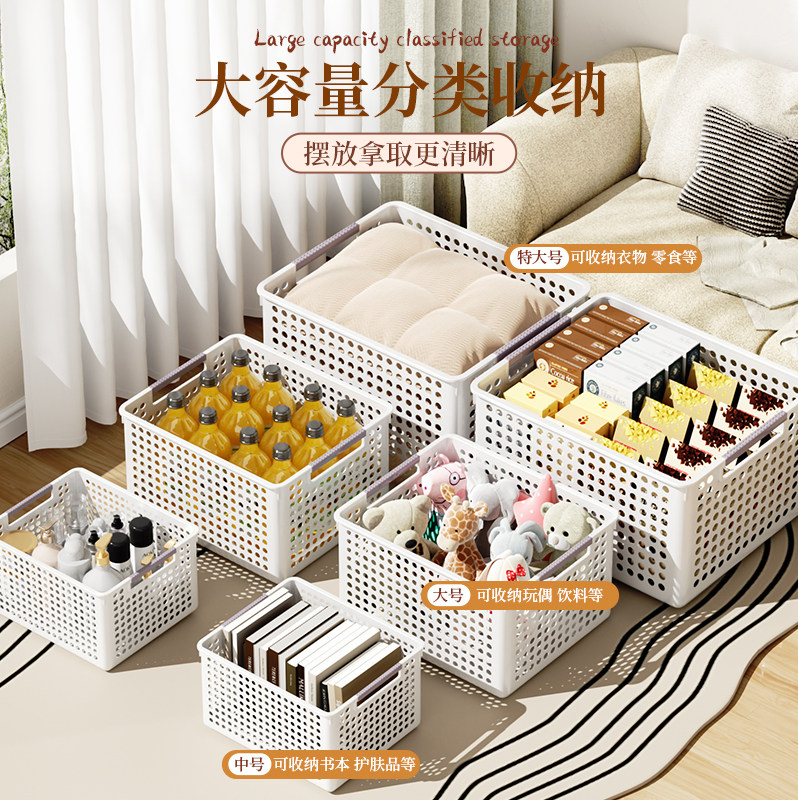 2个装零食杂物收纳箱玩具整理筐塑料储物盒厨房篮子桌面置物镂空