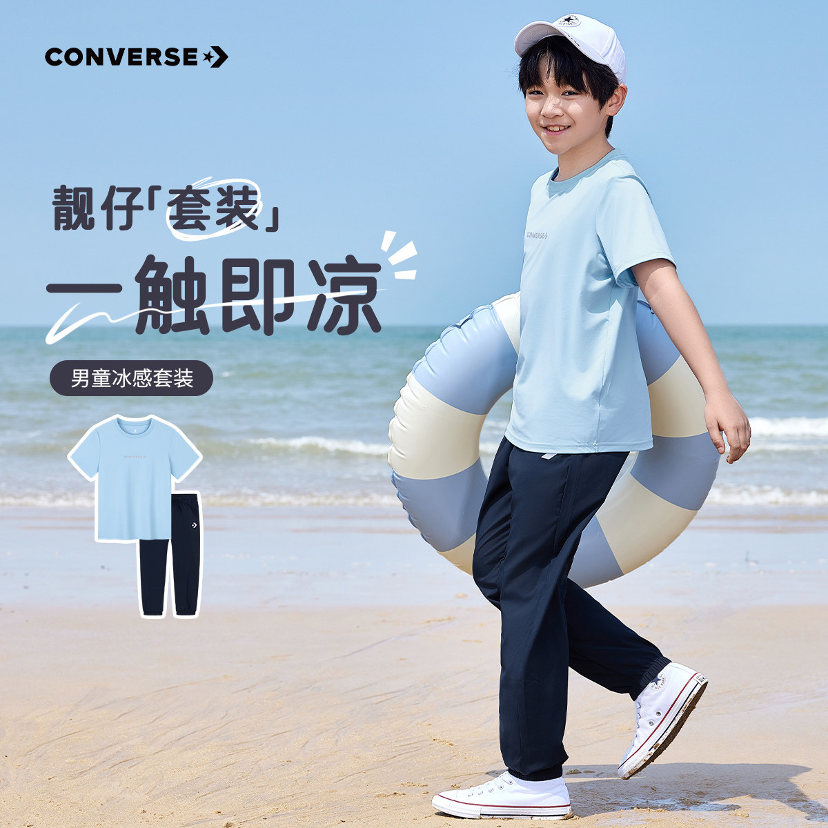 匡威童装男童套装青少年夏季新款中大童休闲两件套短袖长裤防蚊裤