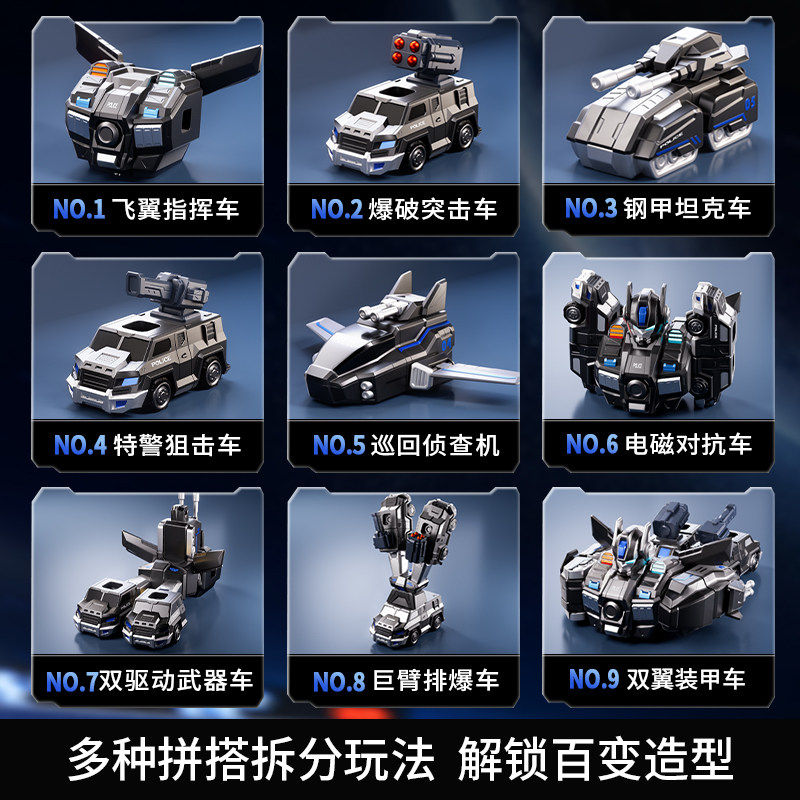 数字变形玩具儿童金刚合体机器人拼装多造型组合汽车字母男孩玩具