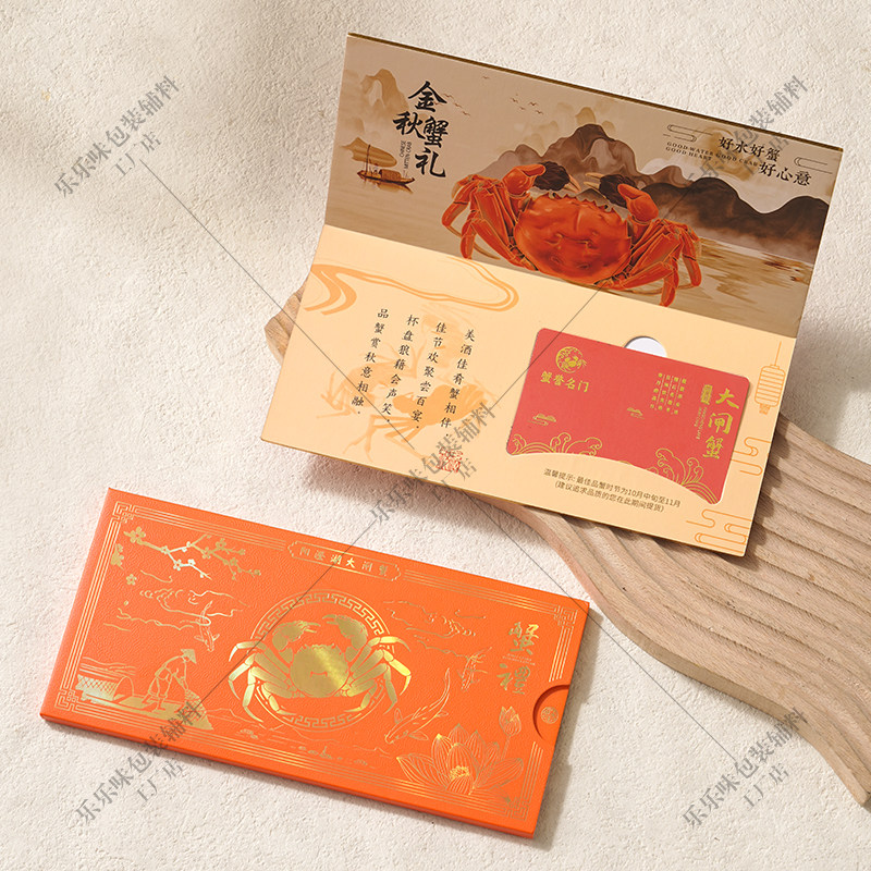 大闸蟹提货卡盒会员提蟹卡套电商蟹卡包装定制中秋礼品卡封盒包装