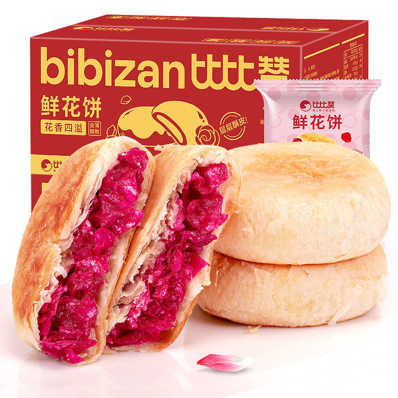 比比赞玫瑰鲜花饼云南特产糕点早餐面包整箱零食小吃休闲食品批发
