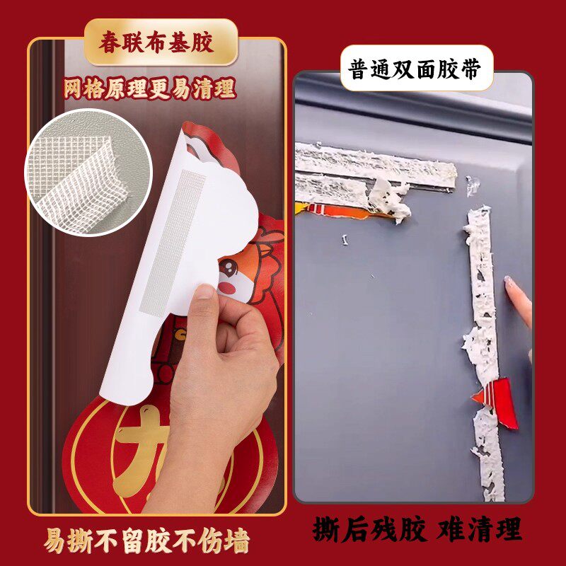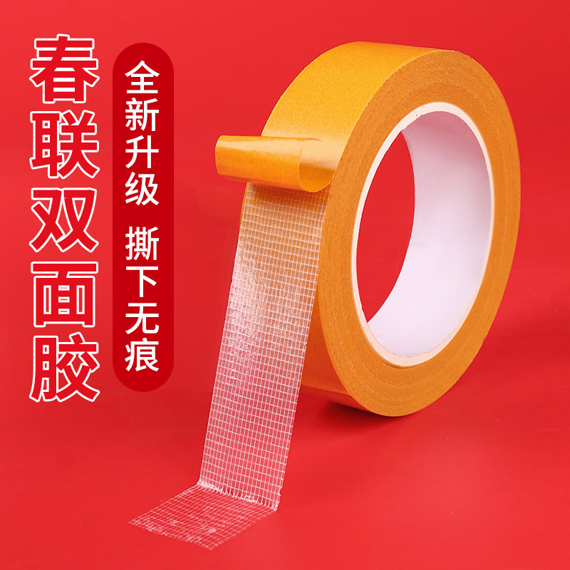 贴春联对联专用双面胶带撕下不留痕迹网格布基无痕胶布婚庆婚房装饰气球喜字福字年画高粘度强力固定墙面结婚