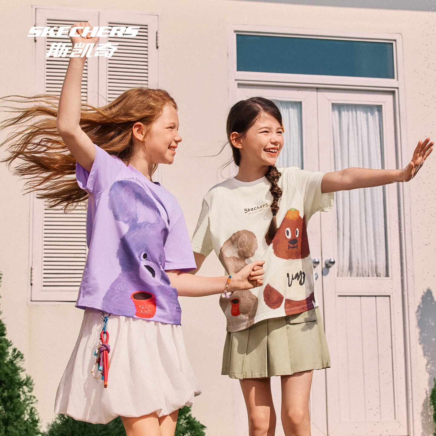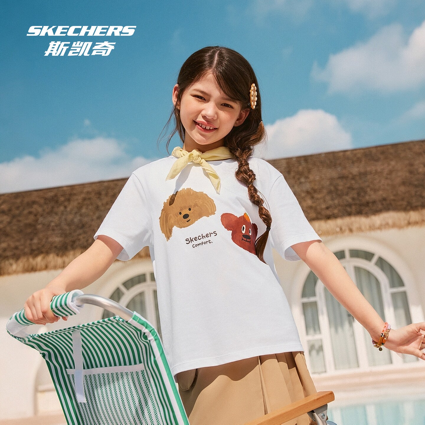 斯凯奇儿童短袖衫纯棉亲子上衣男女童卡通动物休闲百搭夏装舒适