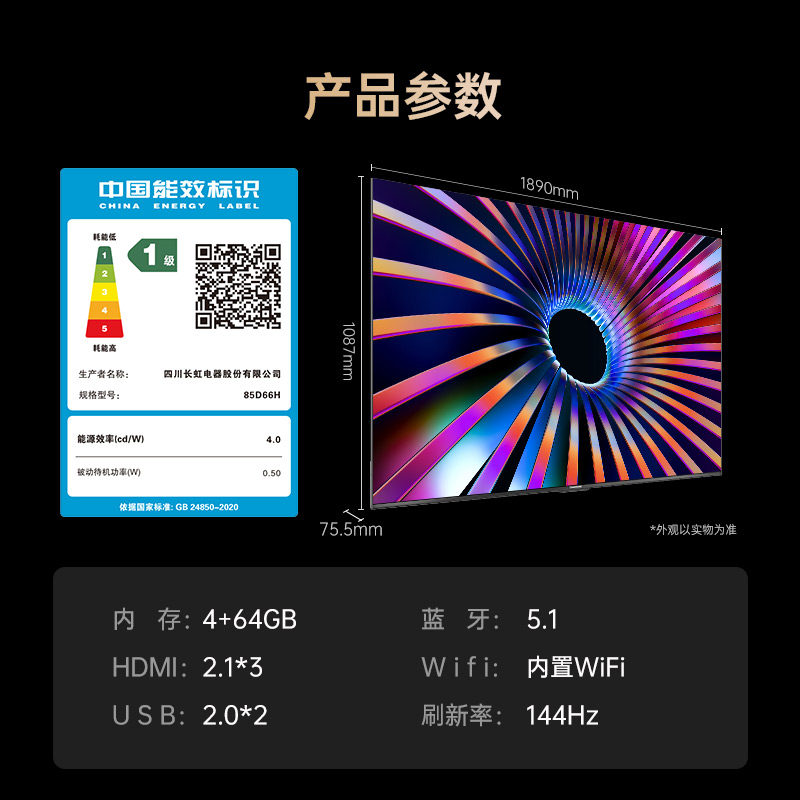 【以旧换新】长虹85D66H 85英寸客厅电视网络智能正品新款