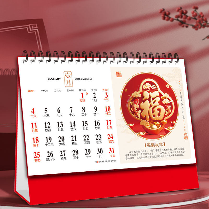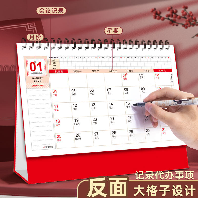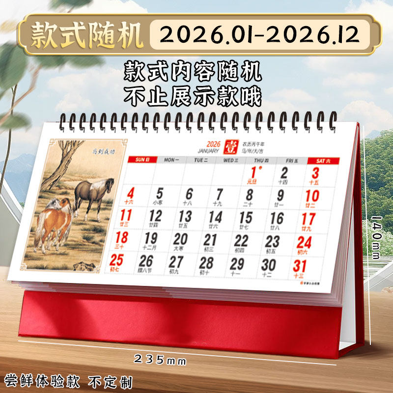 2026年台历特大号中国红红色喜庆三角厚款大字体企业礼品日历国风商务台历桌面马年新款创意月历