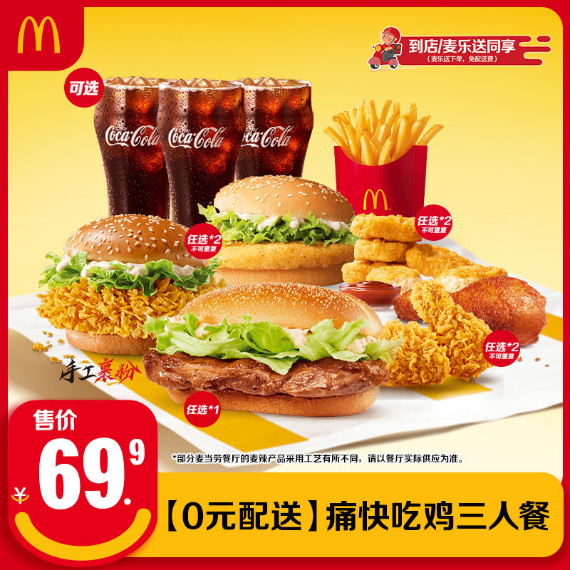【达播专属】麦当劳 [0元免配]痛快吃鸡三人餐单次券【谨防诈骗】