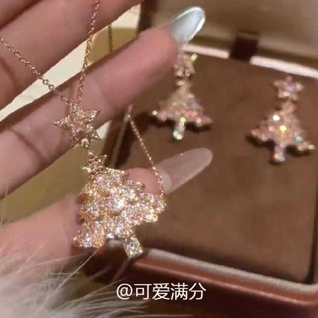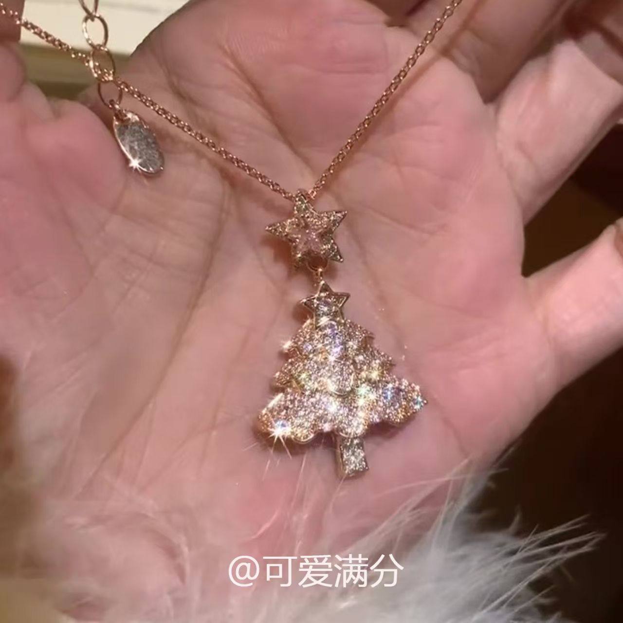 「美好心愿」甜美爆闪粉色星星圣诞树项链精致绝美百搭礼物锁骨链