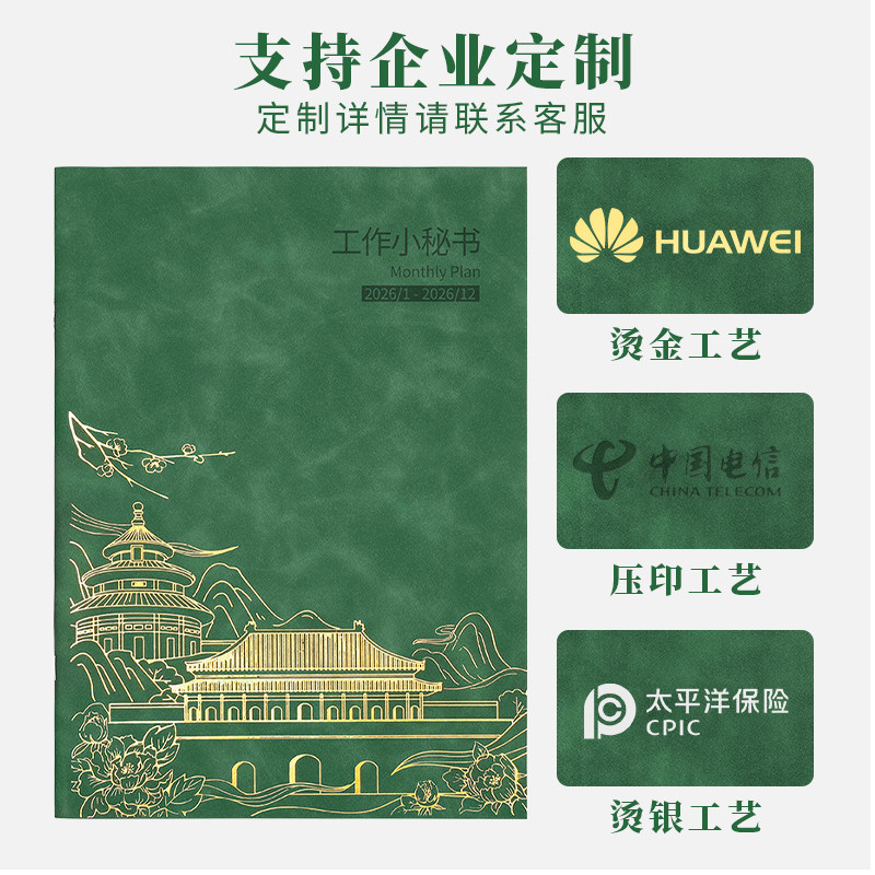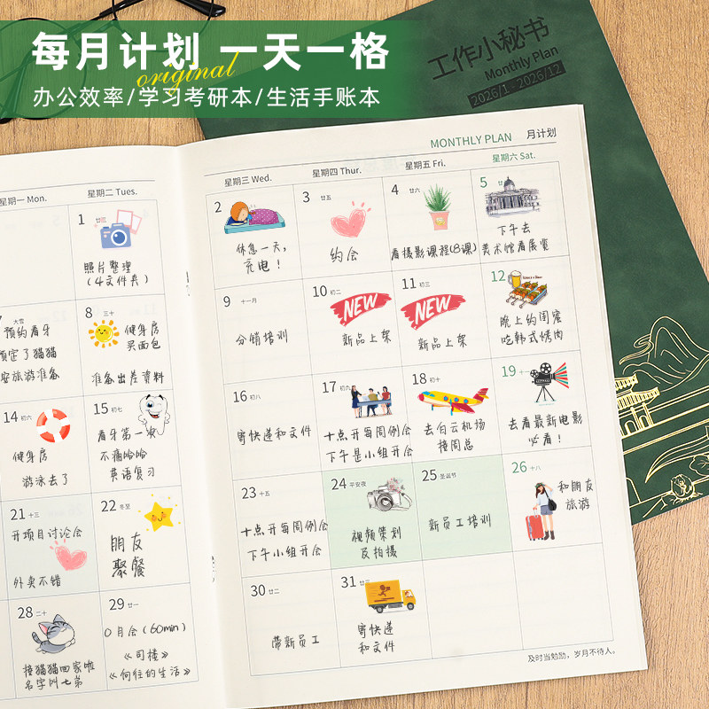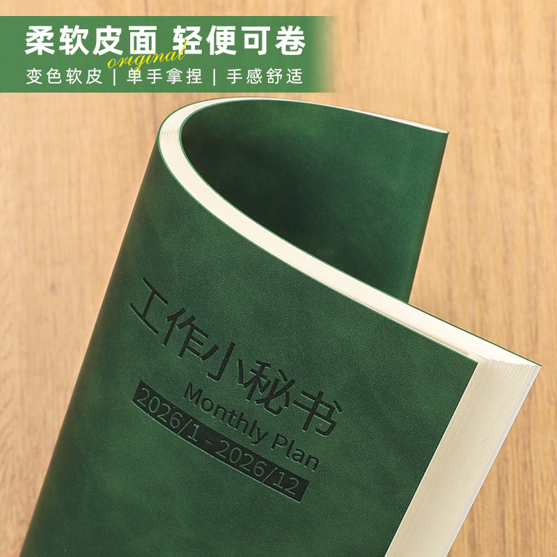 2026年国潮工作小秘书日程本日历记事本行事历日记本月计划日志时间走廊月历新款蛇年笔记本a4本子皮面定制