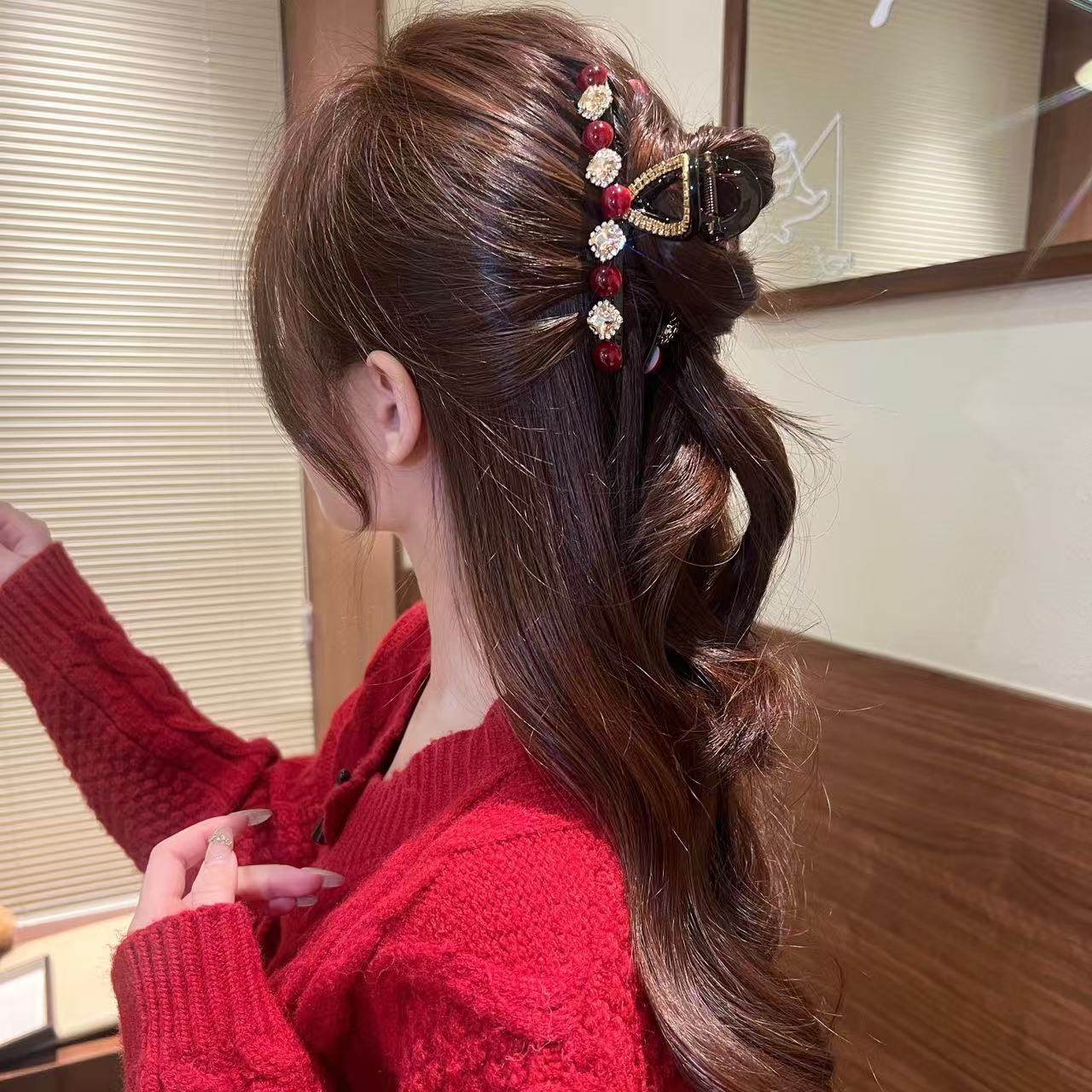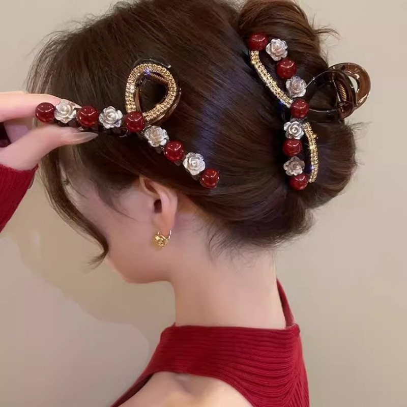 抓夹女高级感2025新款发量大发夹后脑勺鲨鱼夹子新娘订婚头饰精致
