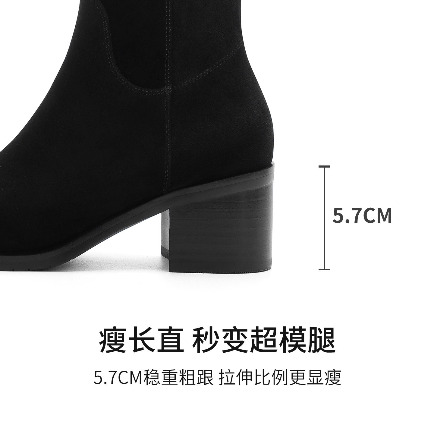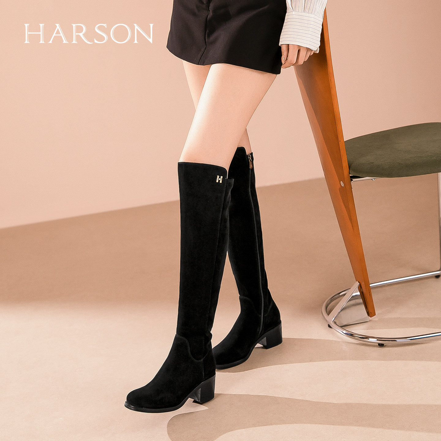哈森绒面粗跟增高过膝靴女2025秋冬新款复古百搭长筒靴HA255807