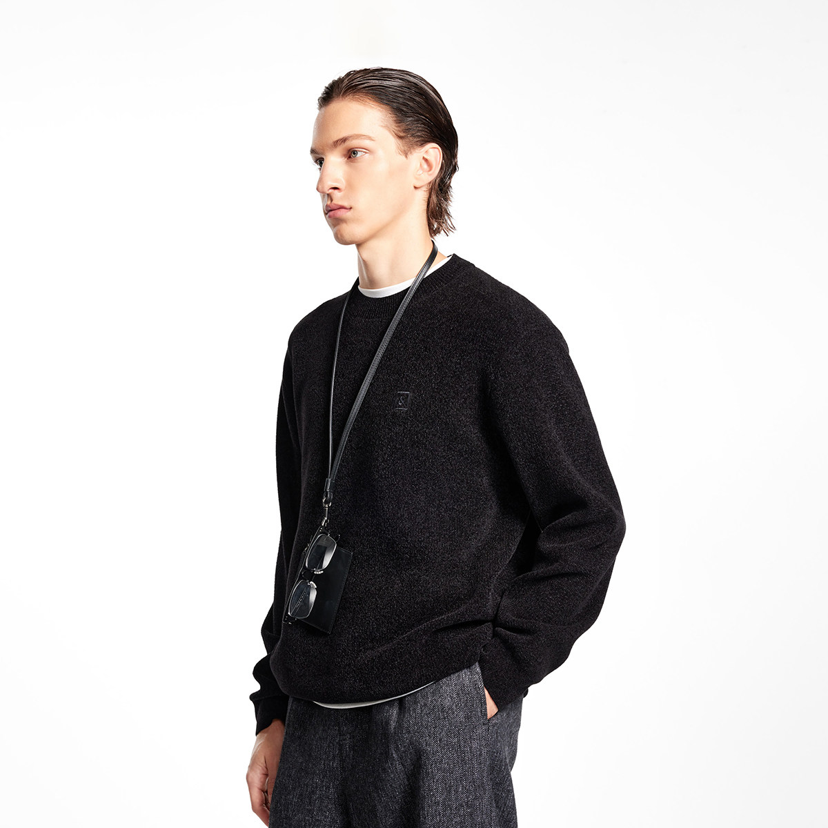略宽松版型,舒适针织面料,罗纹圆领袖口