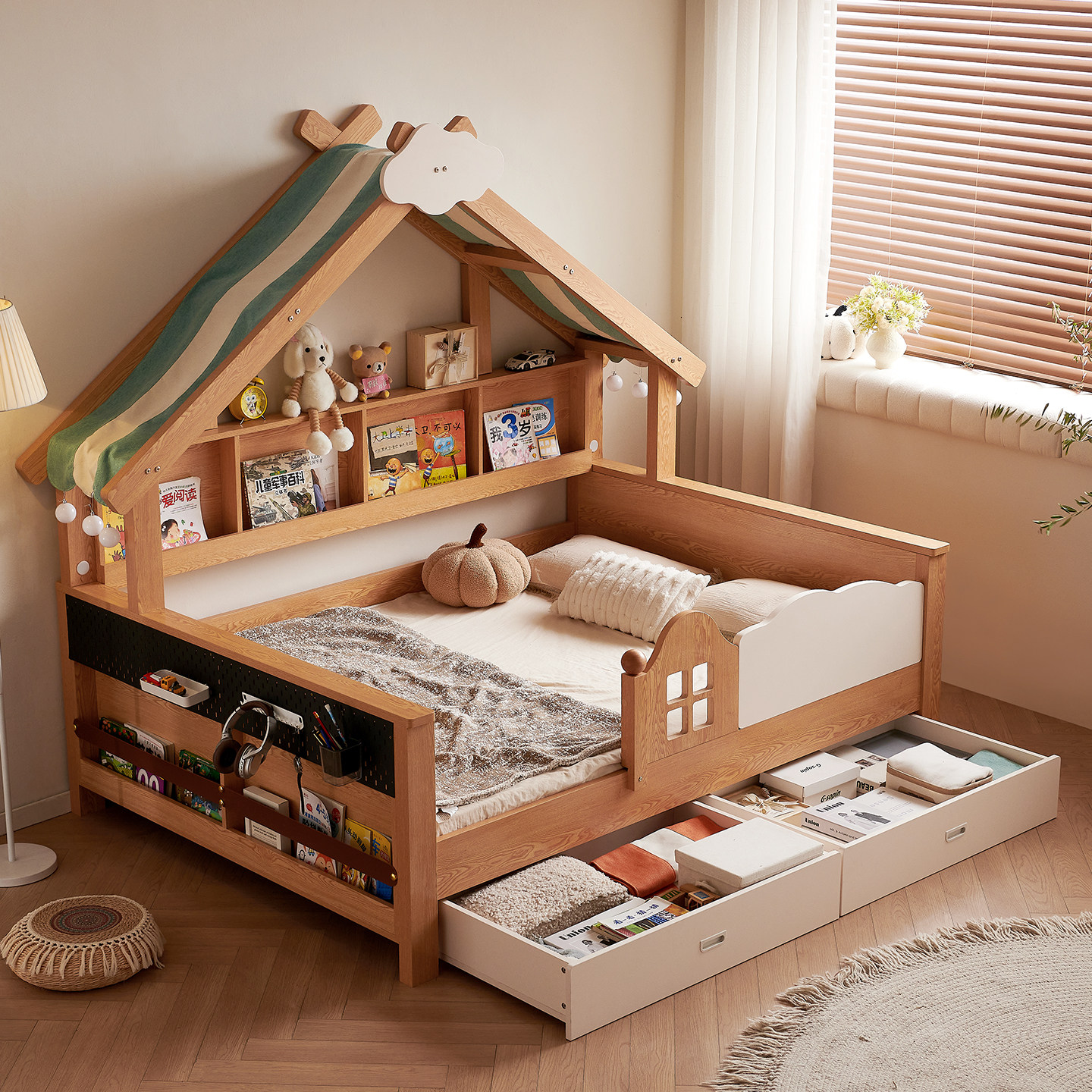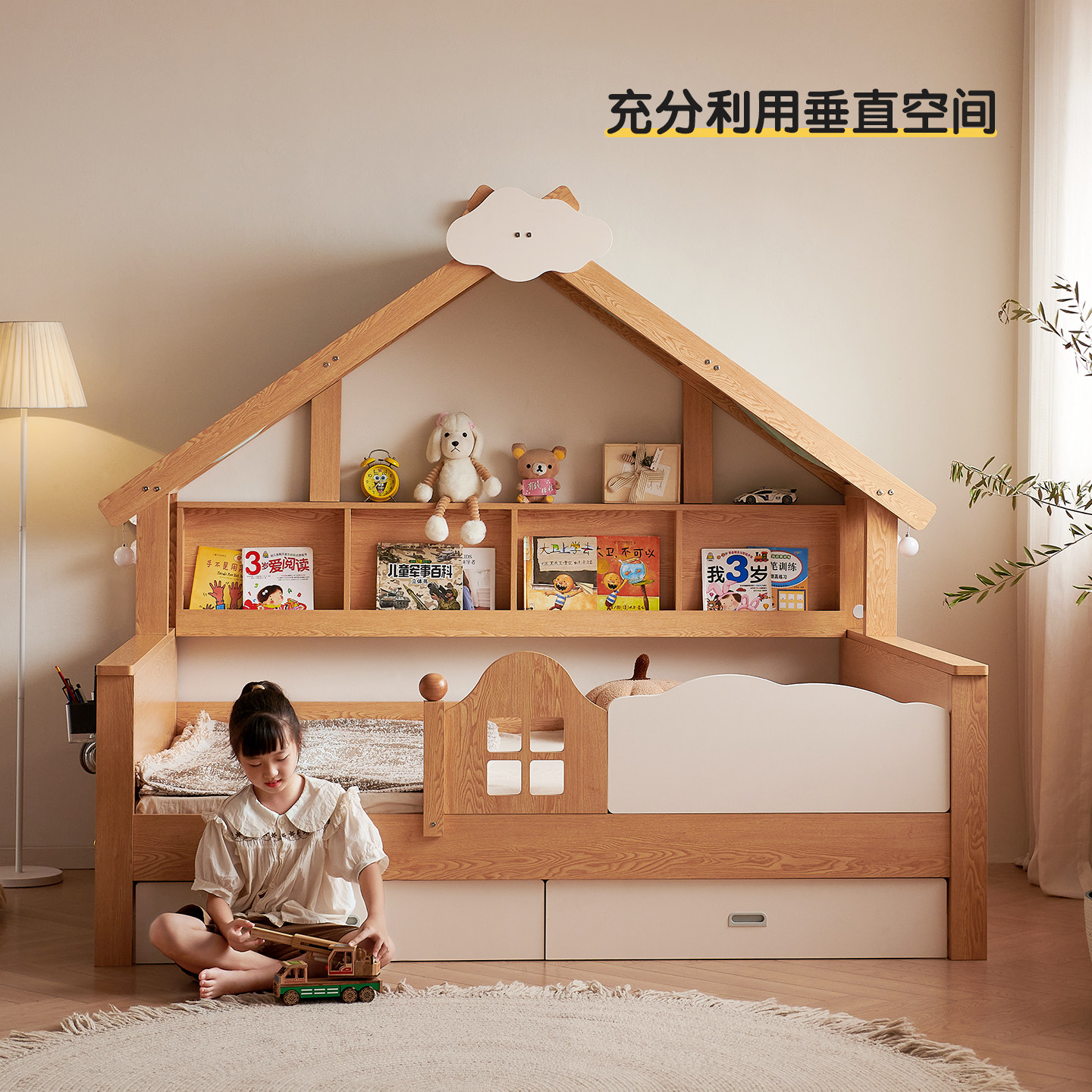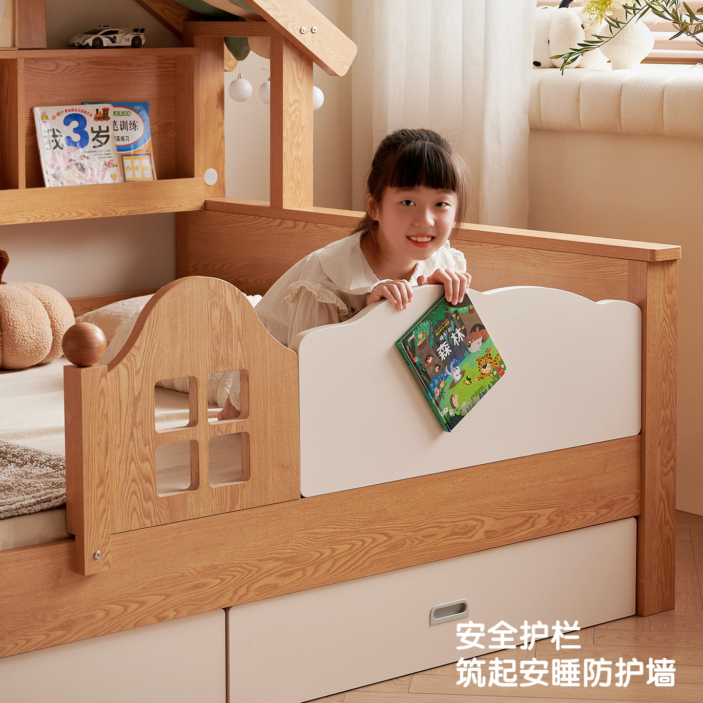 木兜家具树屋儿童床1米2实木床儿童房蒙氏女孩男孩卧室单人小孩床