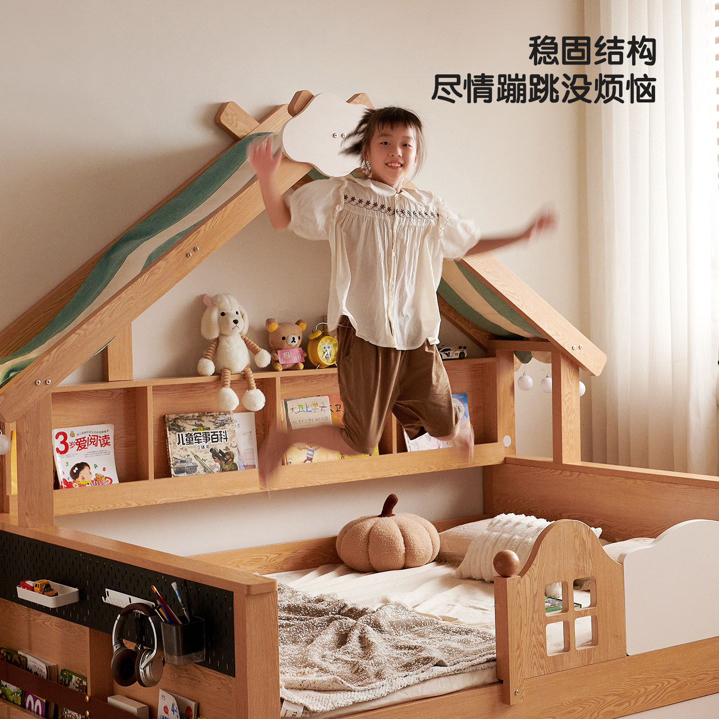 喜力美儿童帐篷床室内实木树屋床男孩单人床宝宝护栏房子床公主床