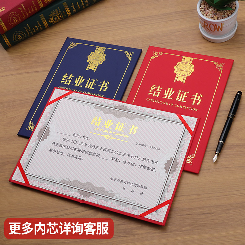 结业证书外壳定做上岗培训证书进修岗位职业技能等级封面党校党课团校结课证书烫金荣誉证书获奖状内页