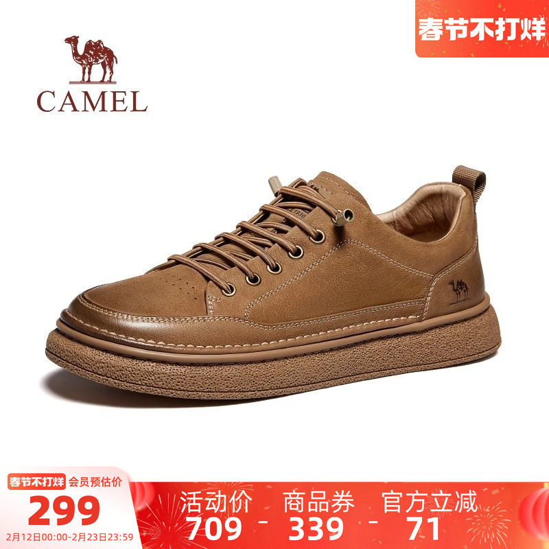 骆驼男鞋2025秋季新款复古板鞋舒适潮流鞋子男免系百搭英伦休闲鞋