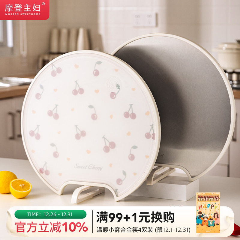 摩登主妇316L不锈钢圆形菜板抗菌防霉家用辅食案板切菜板水果砧板