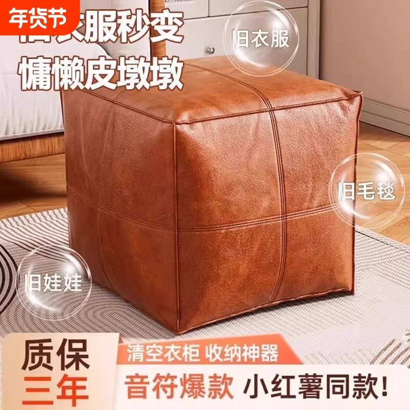 轻奢皮墩子客厅沙发凳坐垫手工脚踏换鞋矮凳家用旧衣物收纳软凳