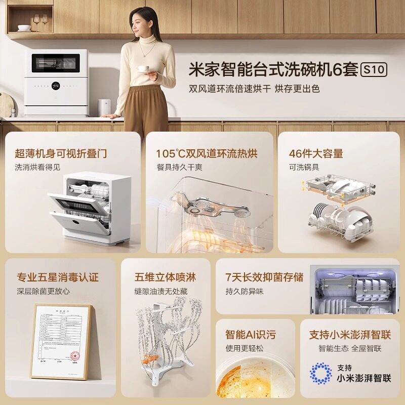 【政府补贴15%】米家智能台式洗碗机6套 S10超薄机身立体喷淋11