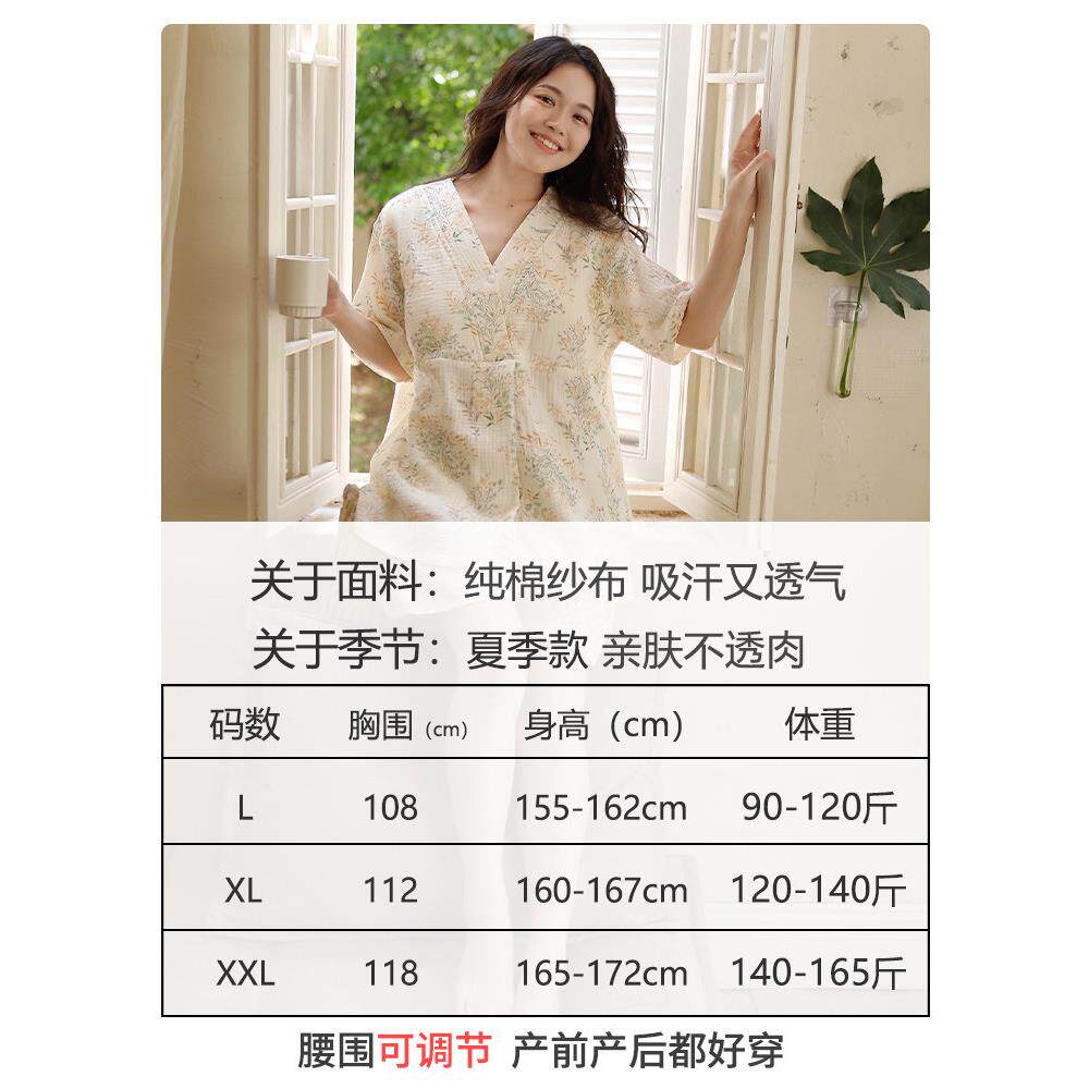 哺乳睡衣夏季薄款带胸垫产后喂奶专用孕妇短袖a类纯棉纱布月子服