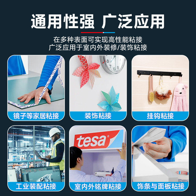 tesa德莎白色PE泡棉强力双面胶铭牌挂钩家居配件饰条面板装饰粘接