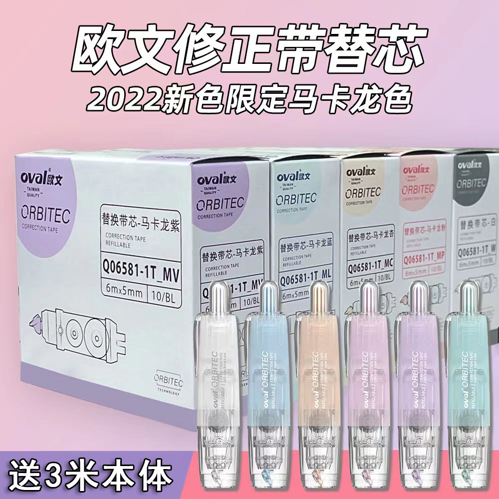 送本体中国台湾oval欧文修正带盒装替芯大容量实惠装小学生多功能涂改带初中生用按动式改正带顺滑少女透明