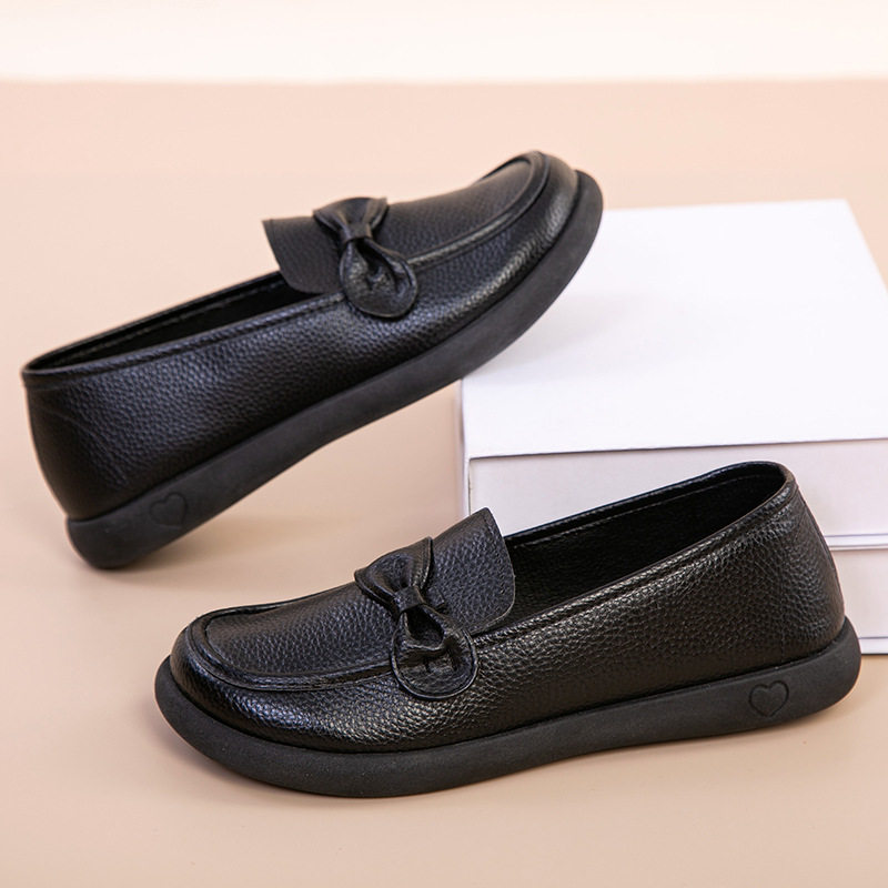真皮乐福鞋女2025春秋新款英伦风小皮鞋一脚蹬厚底女鞋平底黑单鞋
