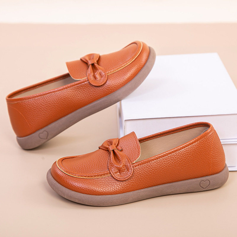 真皮一脚蹬乐福鞋女鞋子2025春秋新款透气小皮鞋黑色平底豆豆单鞋