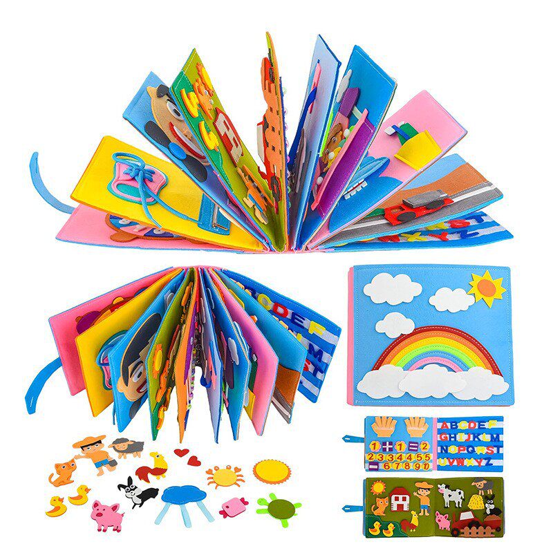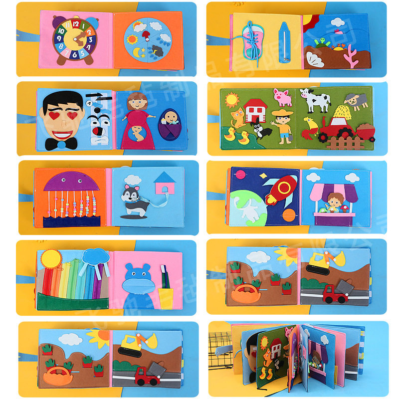 毛毡布书蒙氏早教书儿童DIY玩具穿衣益智农场布书3D立体毛毡书