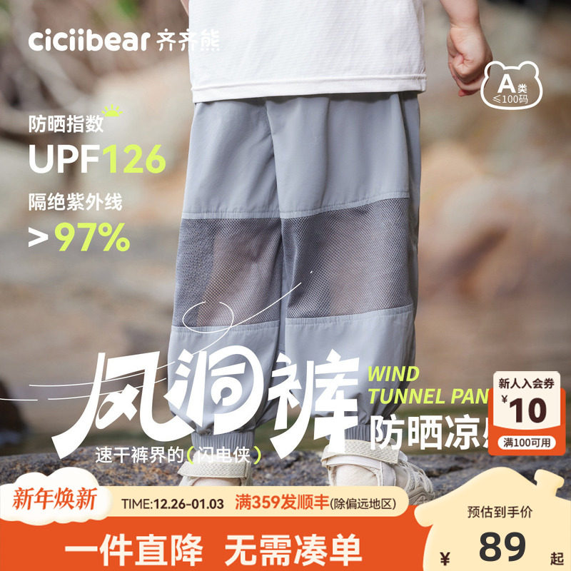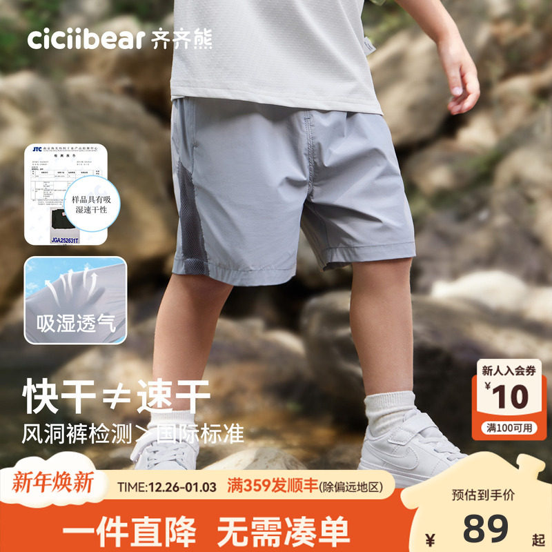 [速干防晒凉感风洞裤]齐齐熊男童防蚊裤夏季宝宝短裤儿童裤子女童