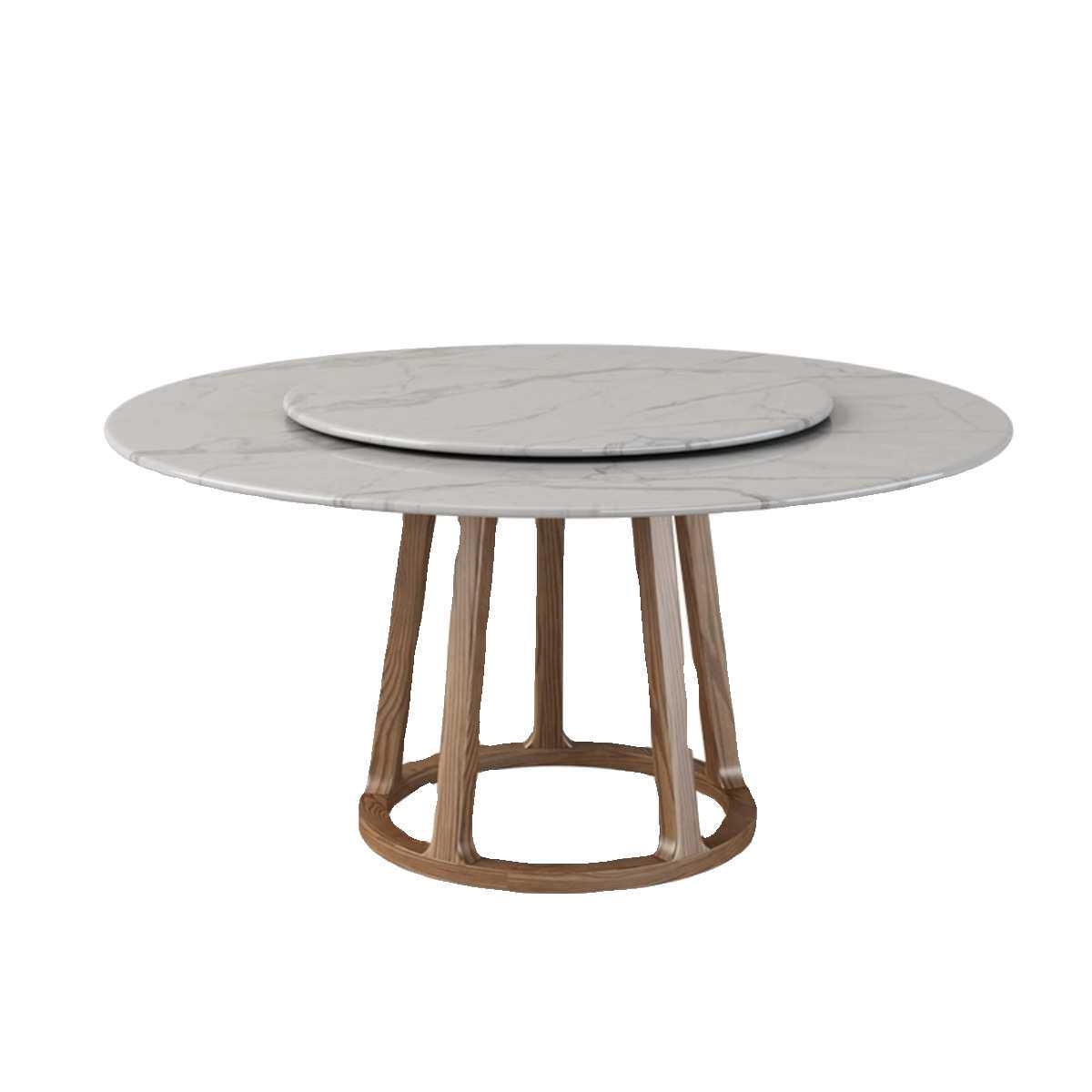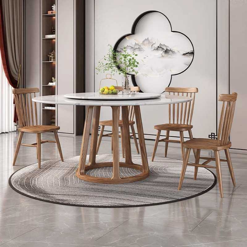 圆形实木餐桌白蜡木微晶石岩板小户型带转盘新中式1.3家用6人饭桌