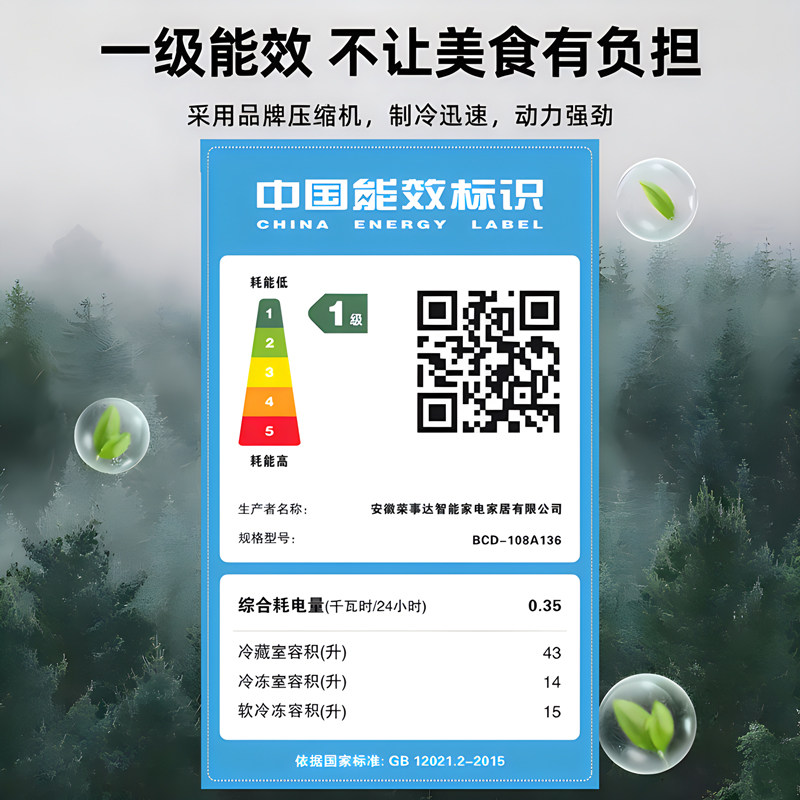 荣事达国补一级能效冰箱家用小型108/215L三门双门租房节能电冰箱
