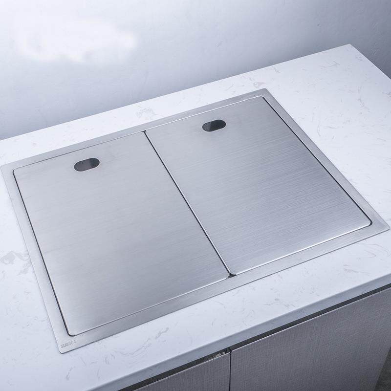 厨房304不锈钢隐藏式小单槽房车中岛吧台带盖隐形折叠茶水间水槽