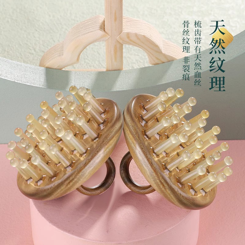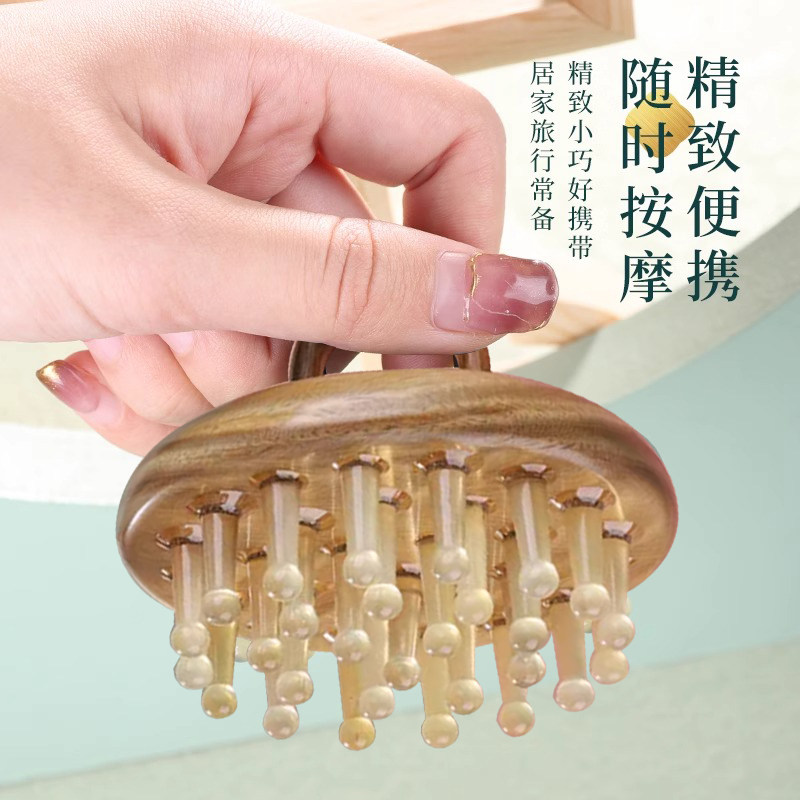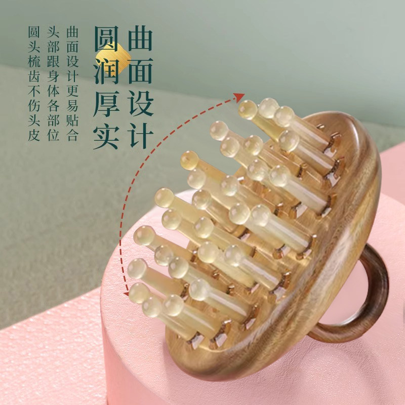 高端檀木圆盘按摩梳头部头皮经络梳毛囊疏通神器养发保健梳子通用