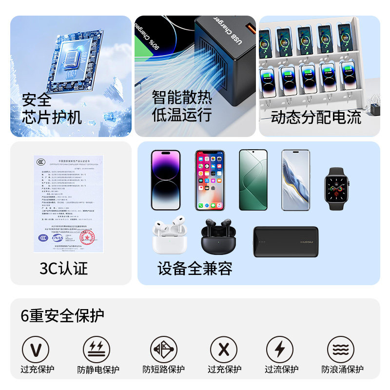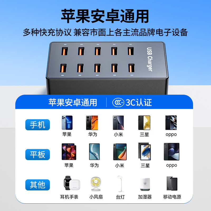 usb多口充电器手机多孔充电桩快充头插头通用快速插排工作室桌面智能大功率插座扩展10/12/15/20/25/30多接口