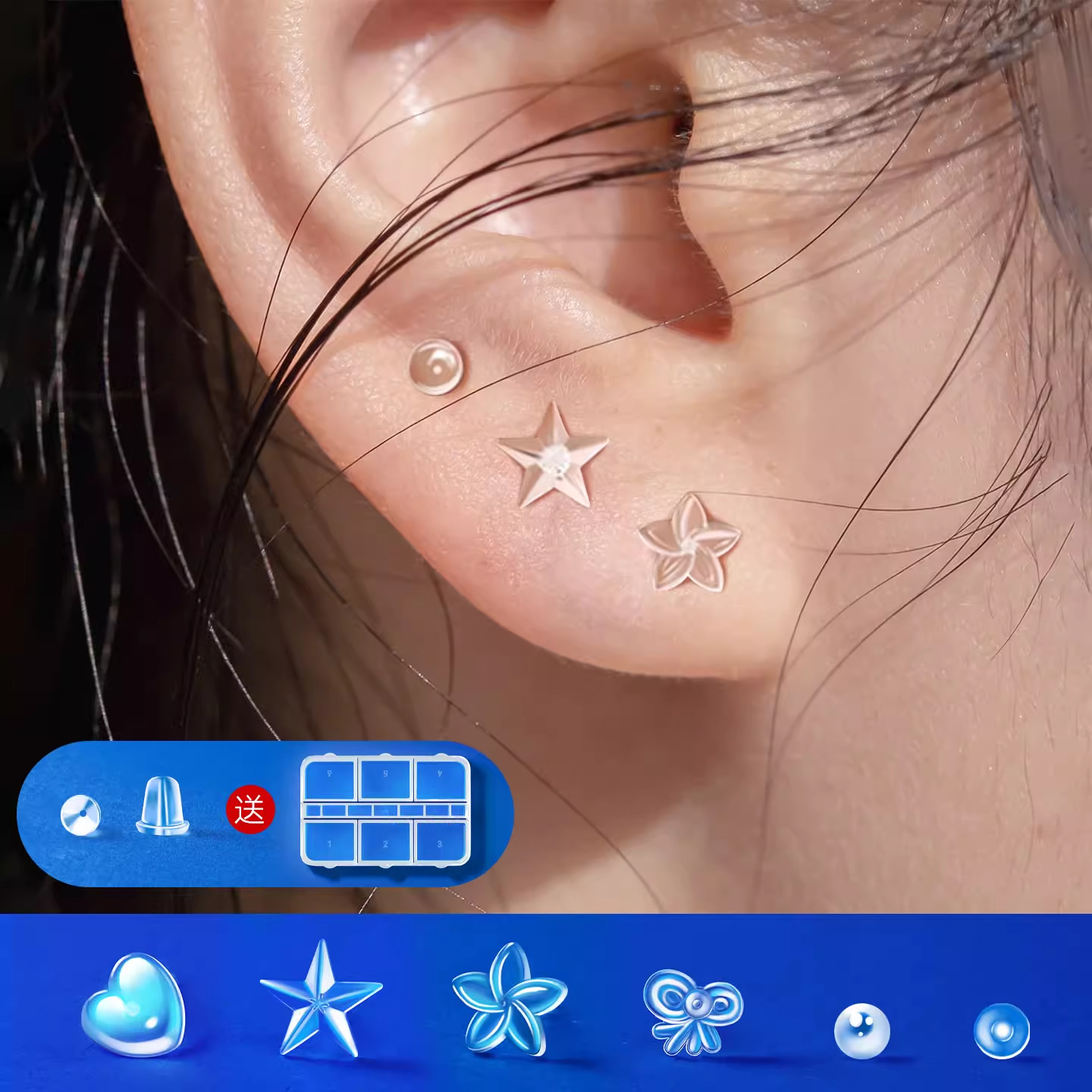 耳堵防掉超紧食品级耳钉堵塞防掉耳环后塞配件耳钉堵头耳饰固定器