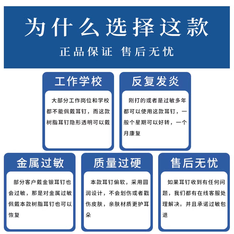 树脂耳钉套装养耳洞透明级隐形消毒耳棒学生防堵免摘耳骨钉女耳饰