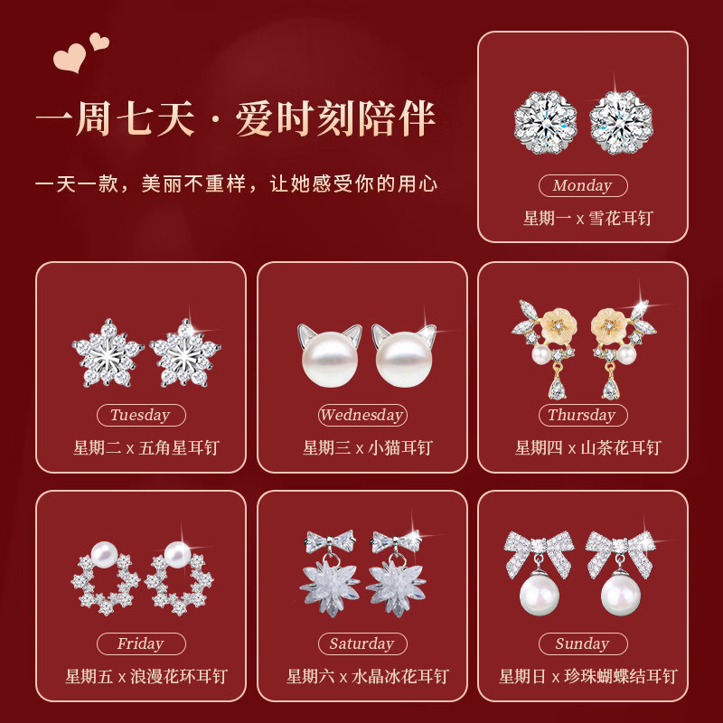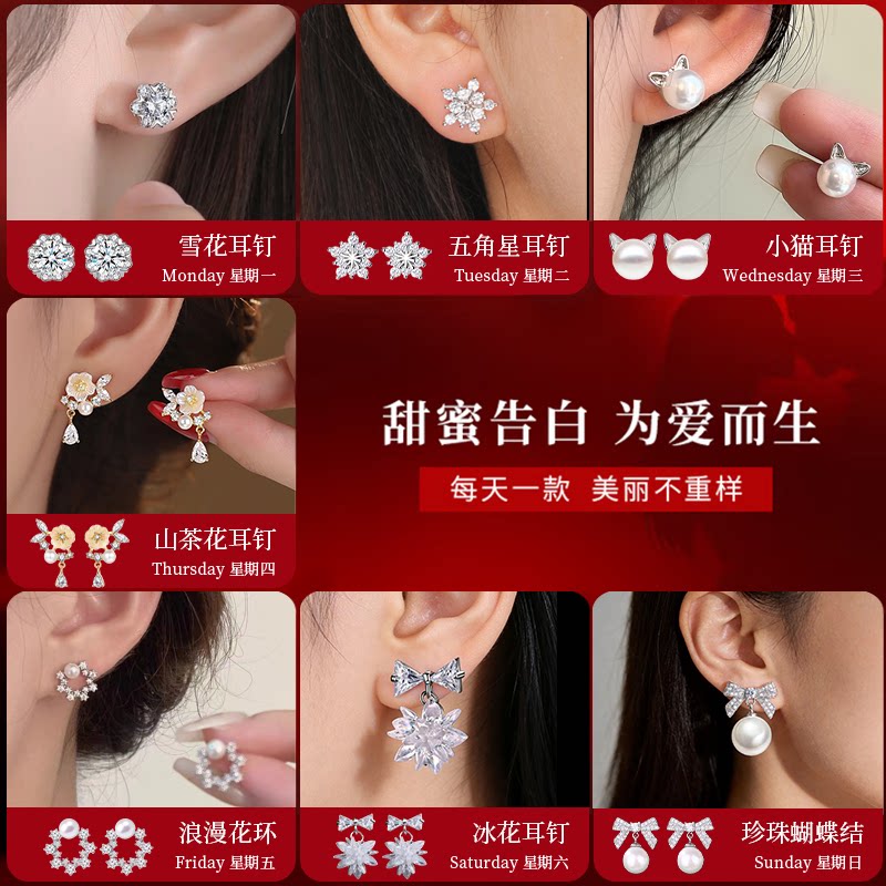 爆款一周耳钉女S925银耳饰高级感套装实用耳环2026新款轻奢送女生
