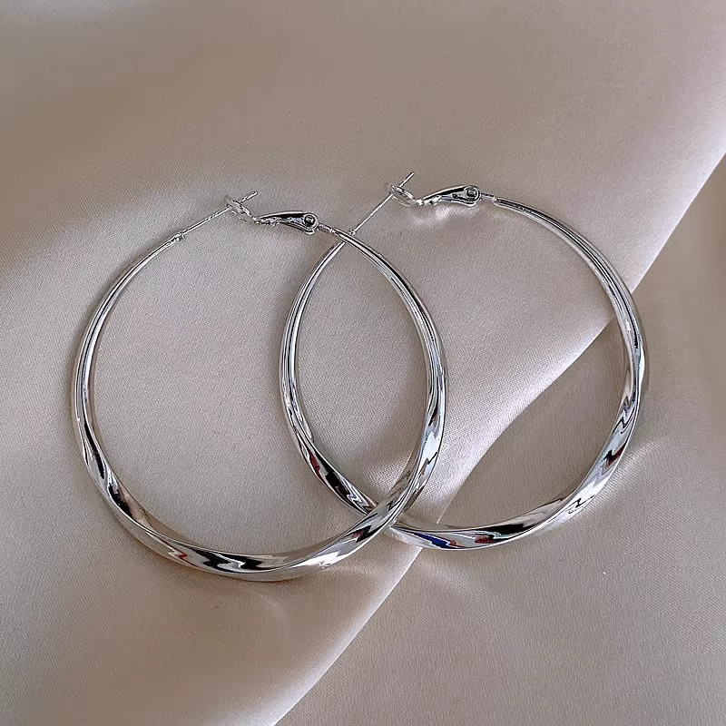 欧美法式夸张大圈圈耳环高级感耳圈银色耳饰2025新款爆款耳扣耳钉