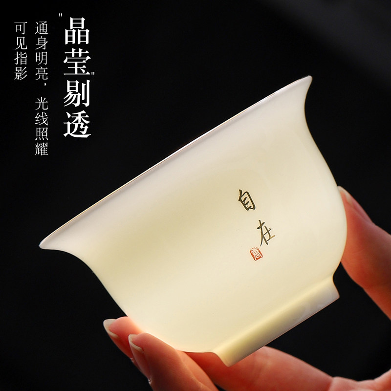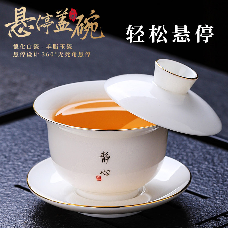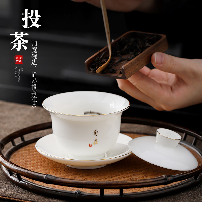 羊脂玉白瓷盖碗茶杯单个家用泡茶碗三才盖子功夫茶具大号高档冰种