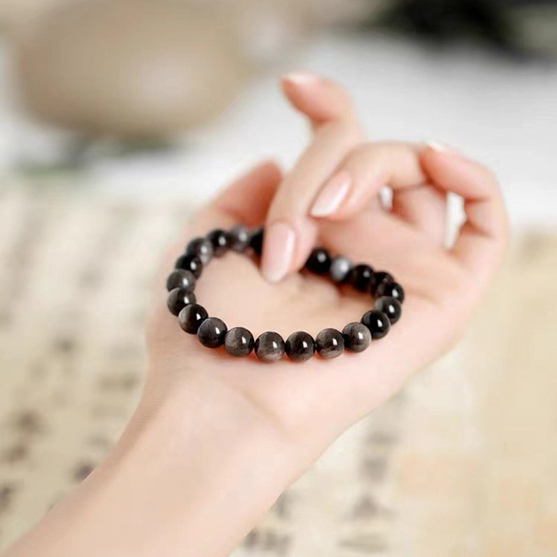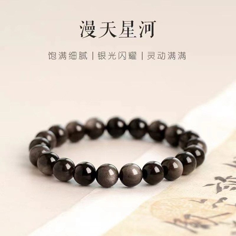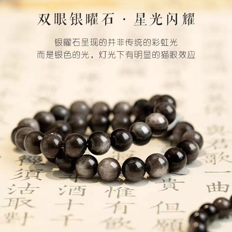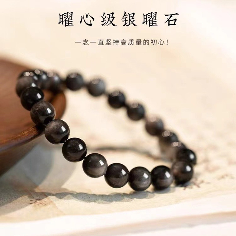 天然银曜石手链女转运珠银曜石手串男佛珠水晶珠子串珠本命年礼物