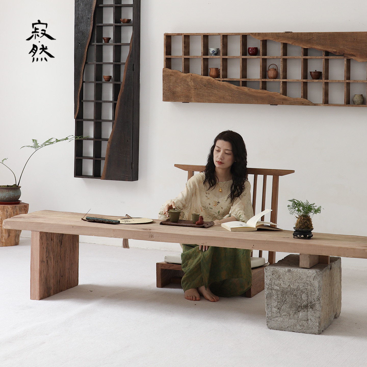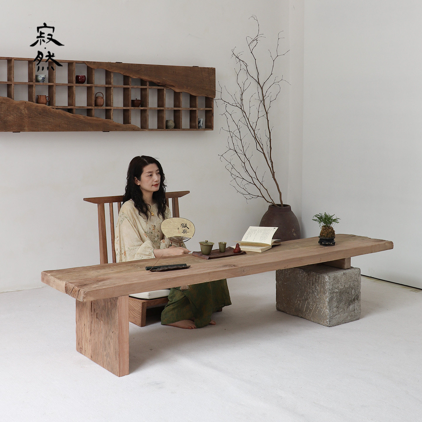 寂然侘寂风实木茶桌椅组合茶室石头茶台原木茶几日式榻榻米矮茶桌