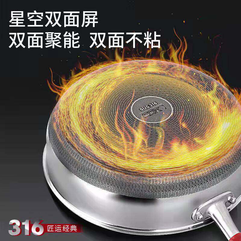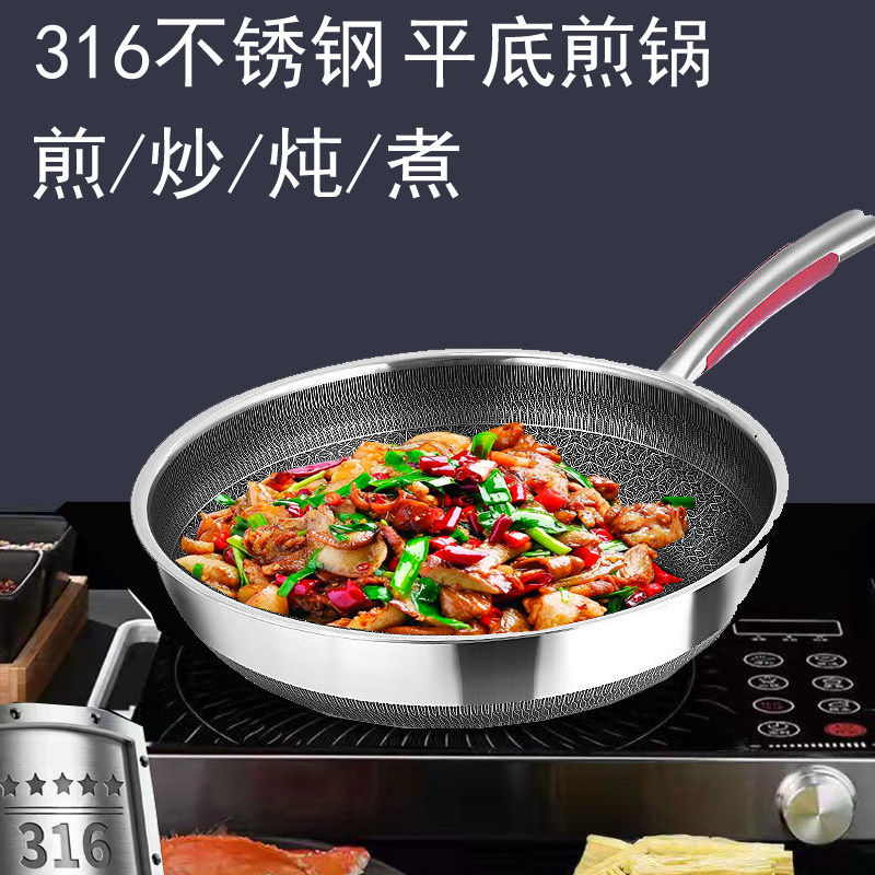 苏泊尔316不锈钢平底锅加深加厚煎锅大平底不粘锅电磁炉燃气灶用B