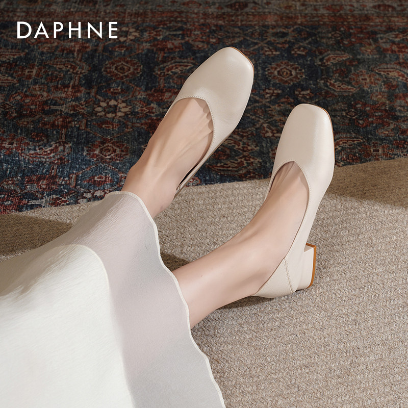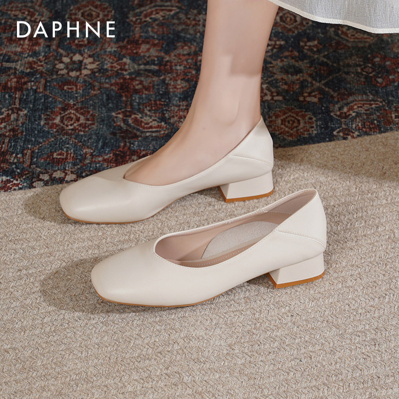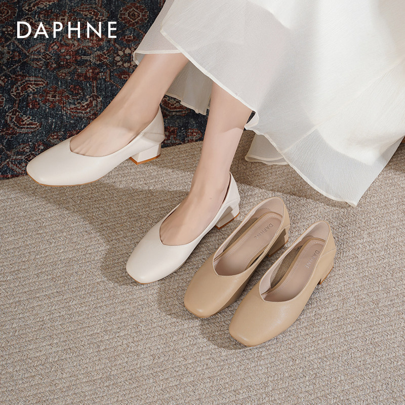 达芙妮粗跟单鞋女2026新款春季软底妈妈鞋皮鞋子通勤玛丽珍高跟鞋