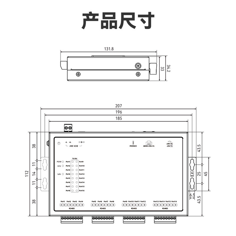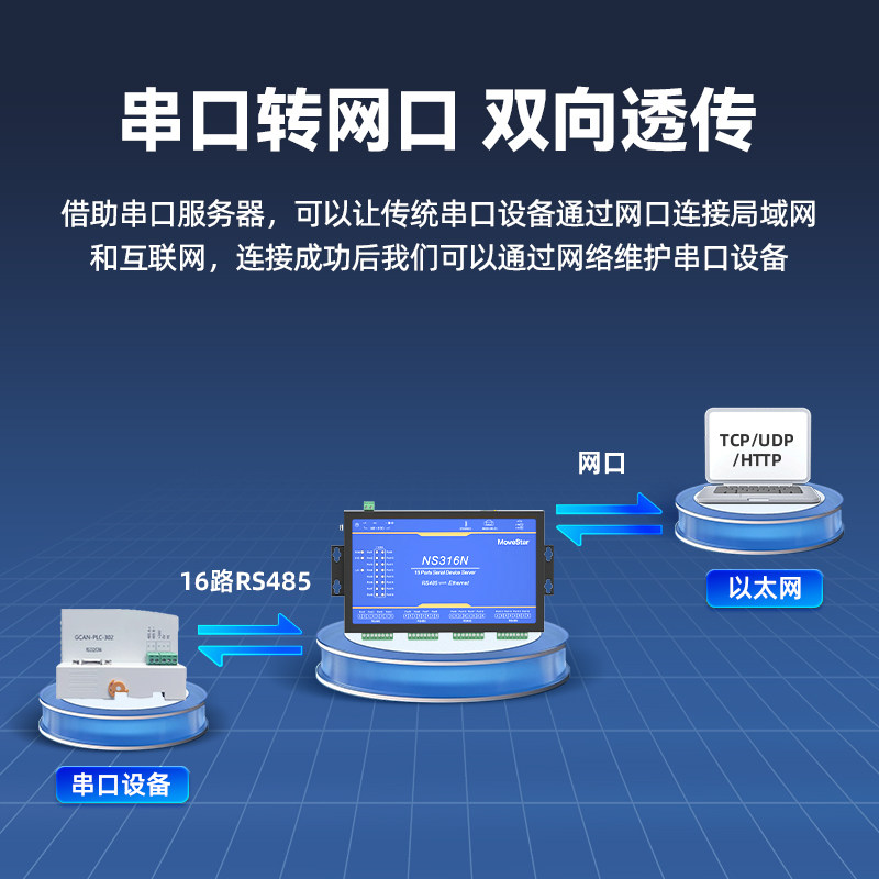 【MoweStar】移星工业级串口服务器16口RS485转千兆网口Modbus TCP桌面式物联网通讯网关串口转以太网 NS316N