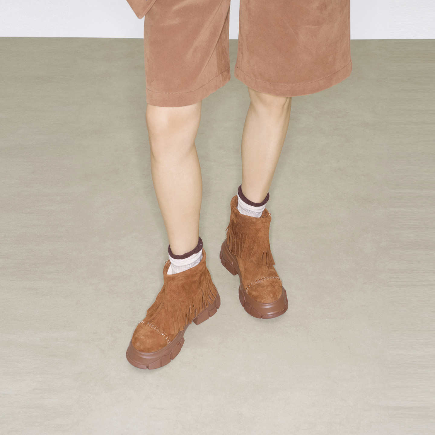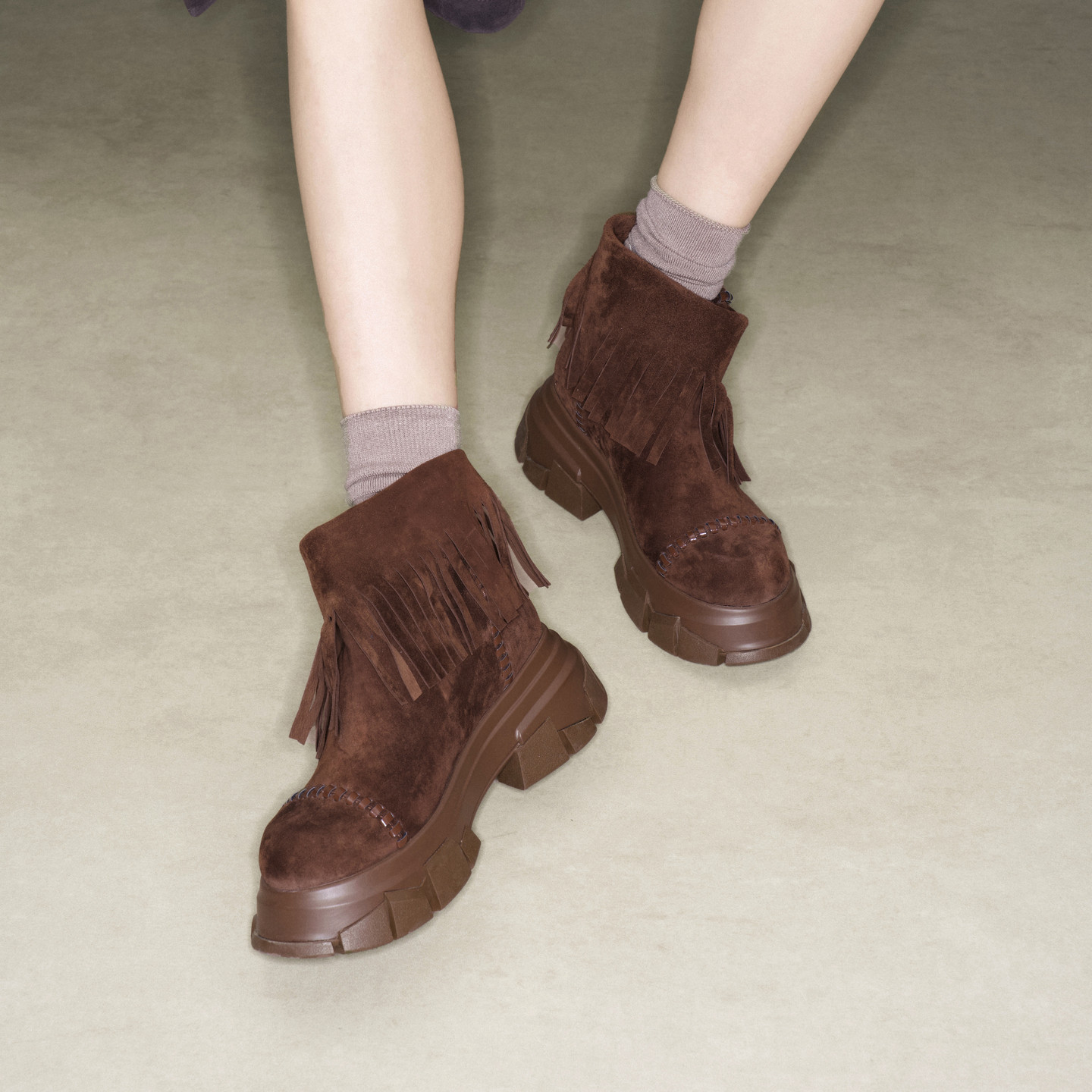 lost in echo冬季新款仿麂皮波西米亚风流苏厚底碎石底短靴子