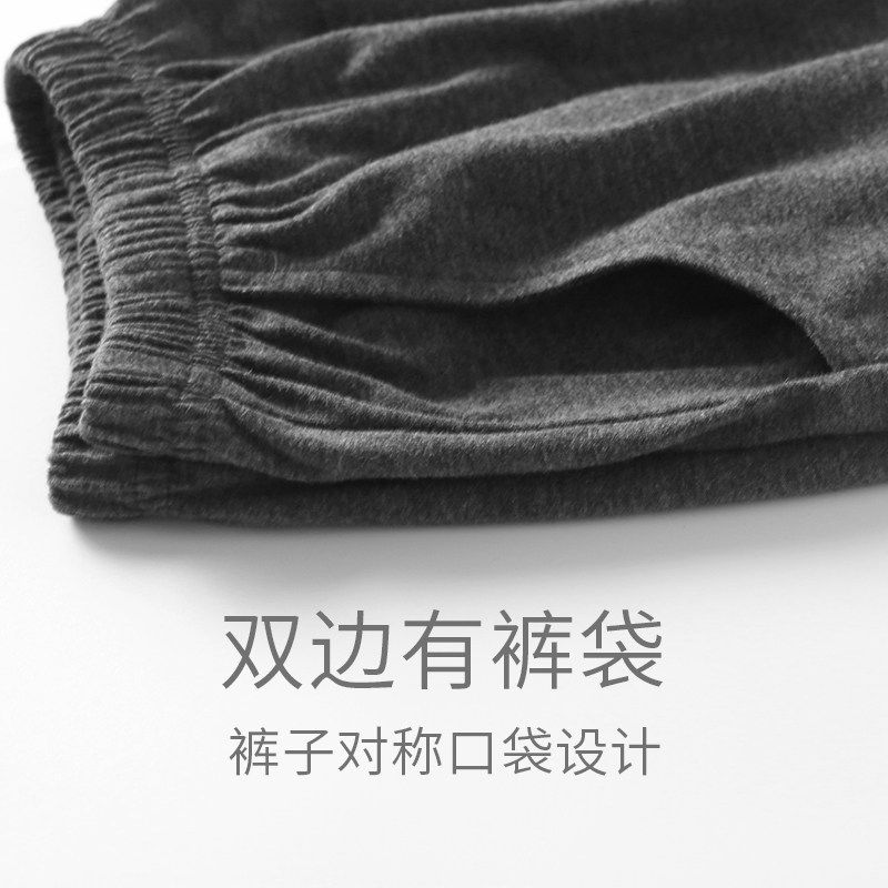 红豆长裤睡裤女春秋纯棉薄款宽松夏季可外穿深灰直筒居家裤全棉家