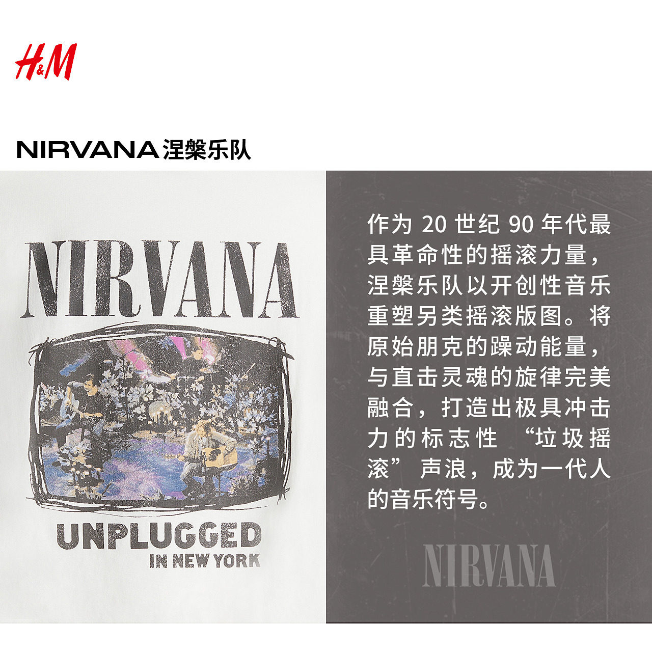 【Nirvana】HM男装女装T恤涅槃乐队印花圆领情侣打底衫1225609
