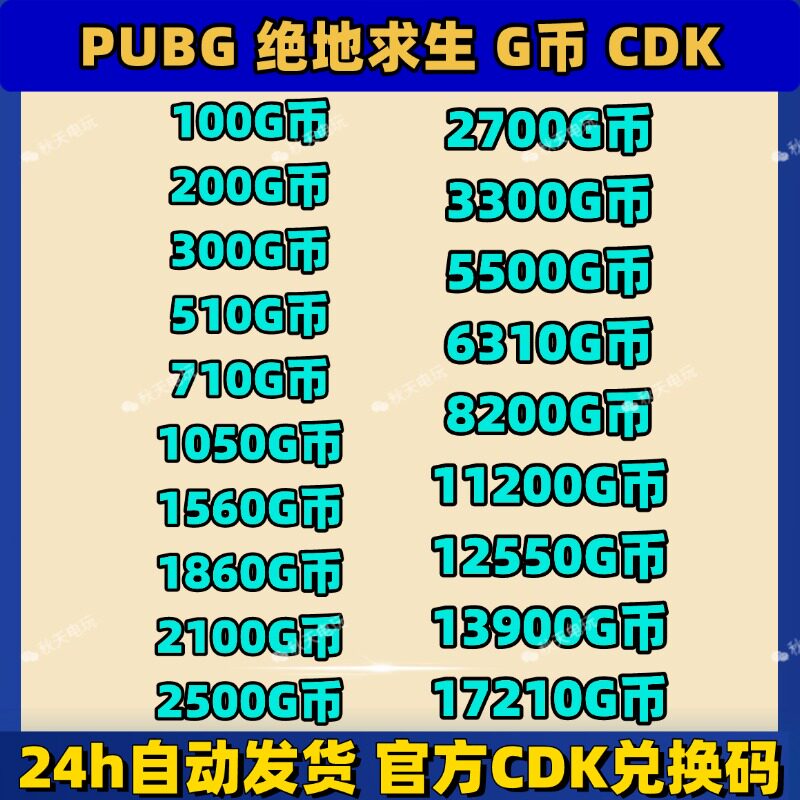 PUBGG币绝地求生G币金币CDK吃鸡g币游戏币皮肤点卷官方充值兑换码